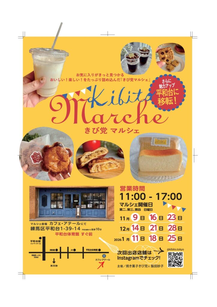 きび党マルシェ 📍10月:氷川台 11月〜:平和台 🍰おいしいお気に入りが見つかる地元のマルシェ 🗓️10/26 🏠出店店舗募集中!氷川台に製造拠点あり 📩DMにてお問い合わせください 焼き菓子きび党 チーズケーキやアップルパイなどきび砂糖を使った甘さ控えめのお菓子を販売。